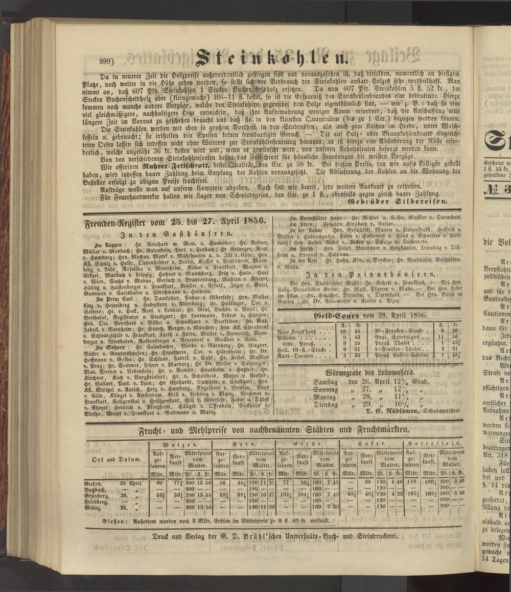 Anzeigeblatt für die Provinzialhauptstadt Gießen. 1840-1867