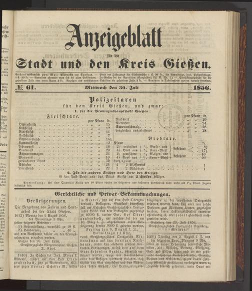 Anzeigeblatt für die Provinzialhauptstadt Gießen. 1840-1867