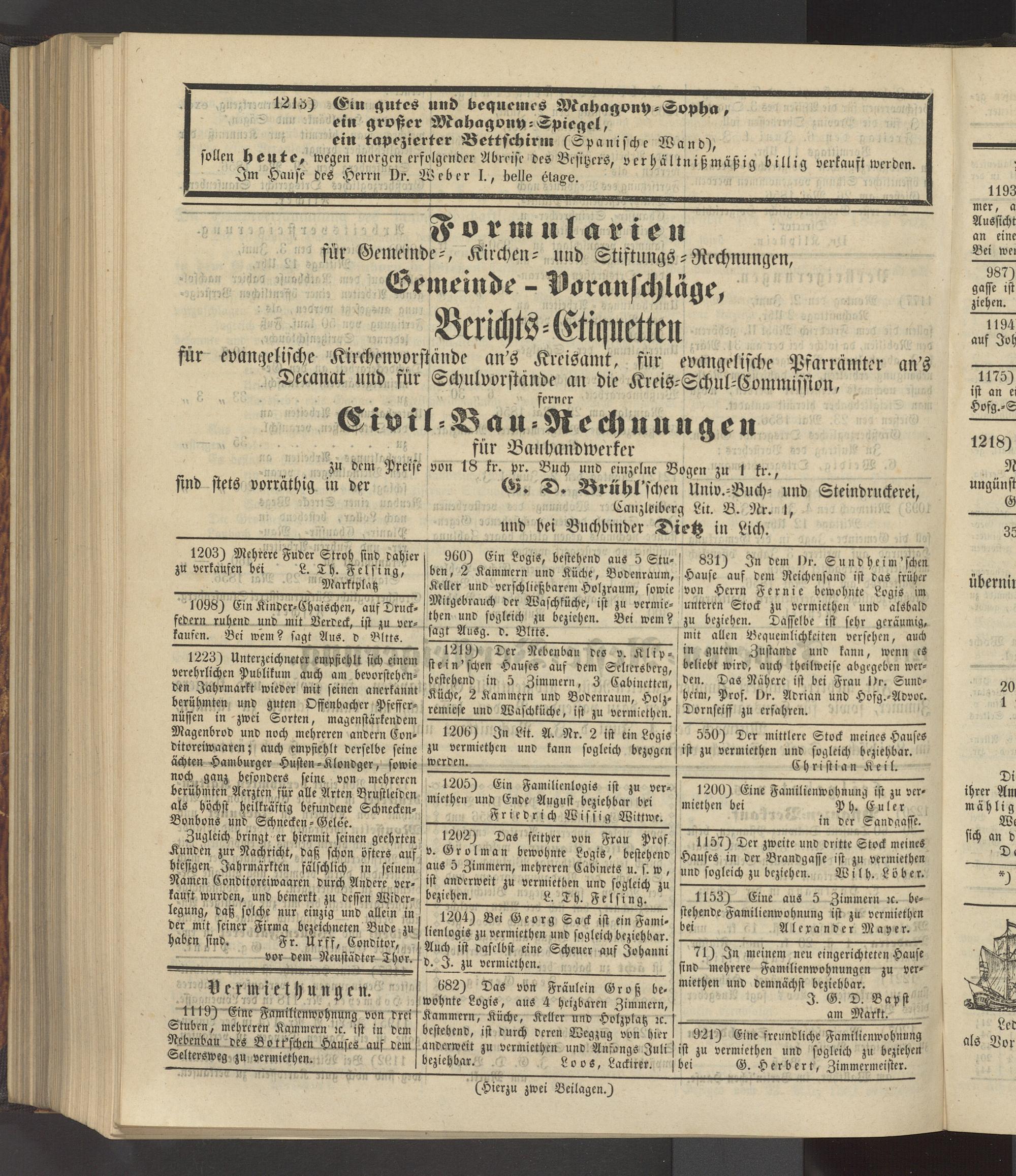 Anzeigeblatt für die Provinzialhauptstadt Gießen. 1840-1867