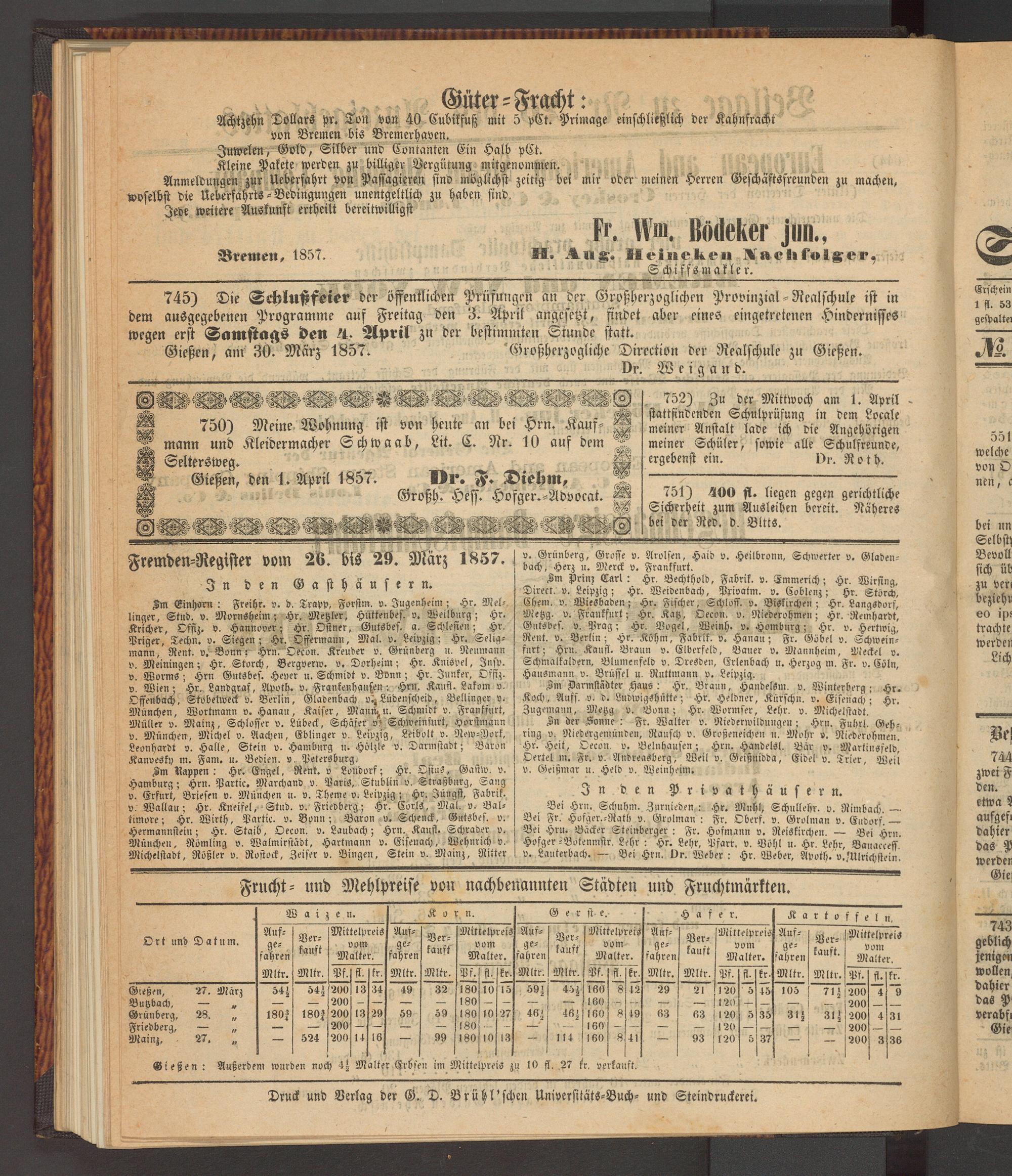 Anzeigeblatt für die Provinzialhauptstadt Gießen. 1840-1867