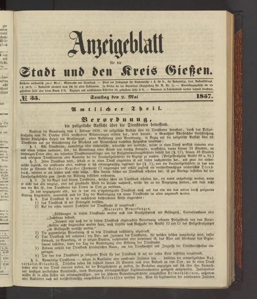 Anzeigeblatt für die Provinzialhauptstadt Gießen. 1840-1867