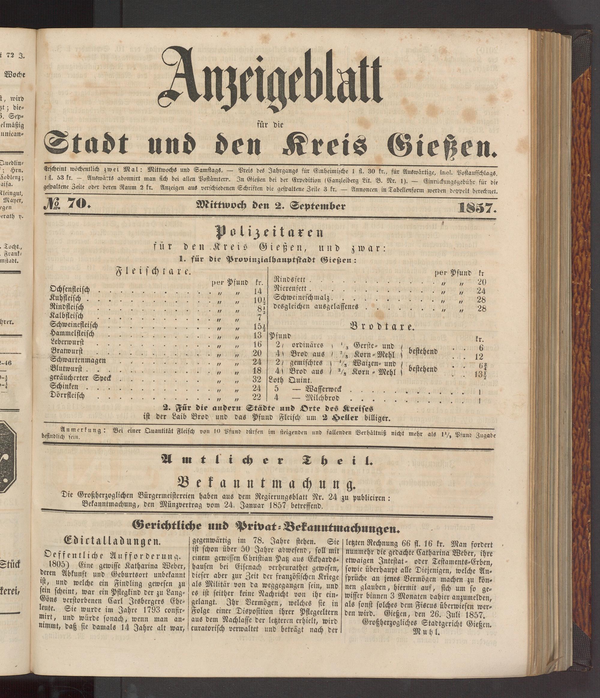 Anzeigeblatt für die Provinzialhauptstadt Gießen. 1840-1867