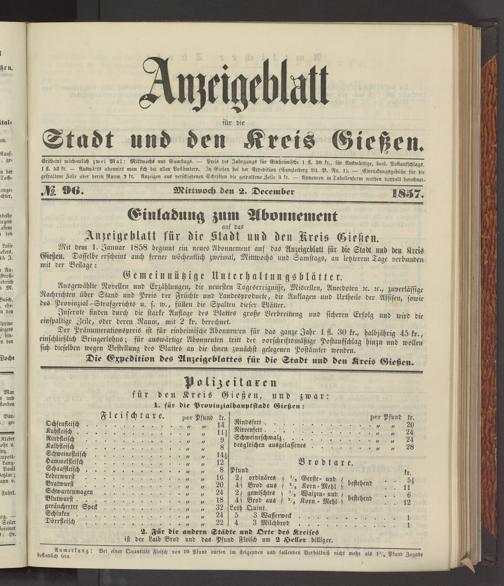 Anzeigeblatt für die Provinzialhauptstadt Gießen. 1840-1867