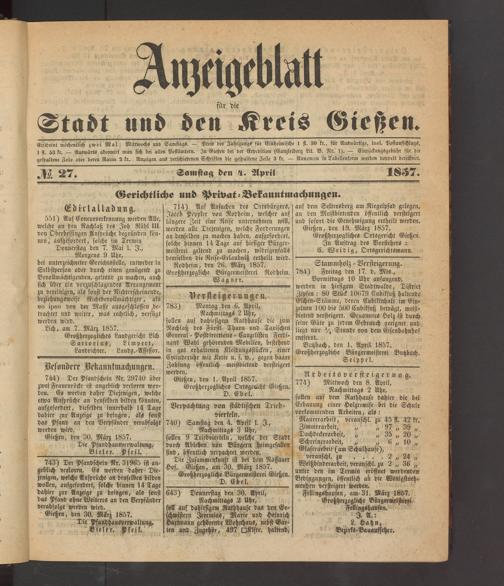 Anzeigeblatt für die Provinzialhauptstadt Gießen. 1840-1867