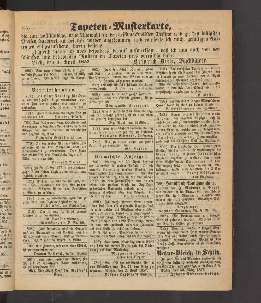 Anzeigeblatt für die Provinzialhauptstadt Gießen. 1840-1867