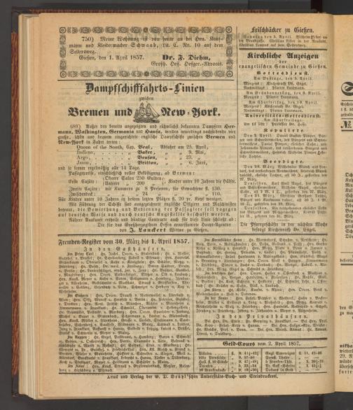 Anzeigeblatt für die Provinzialhauptstadt Gießen. 1840-1867