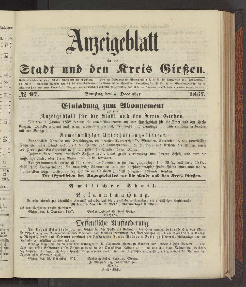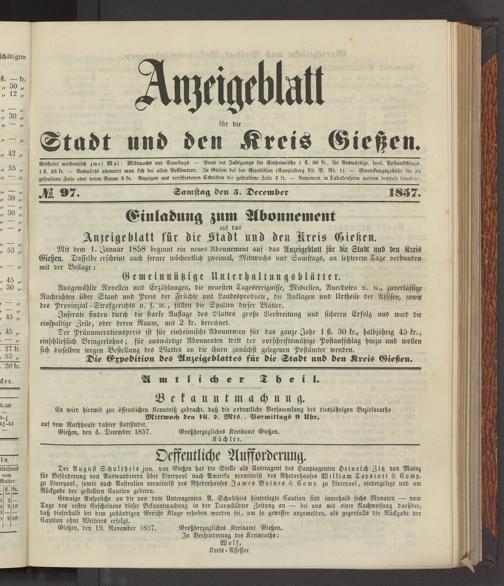 Anzeigeblatt für die Provinzialhauptstadt Gießen. 1840-1867