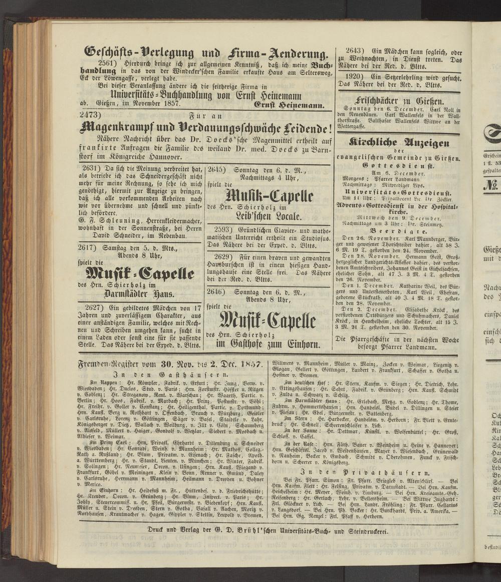Anzeigeblatt für die Provinzialhauptstadt Gießen. 1840-1867