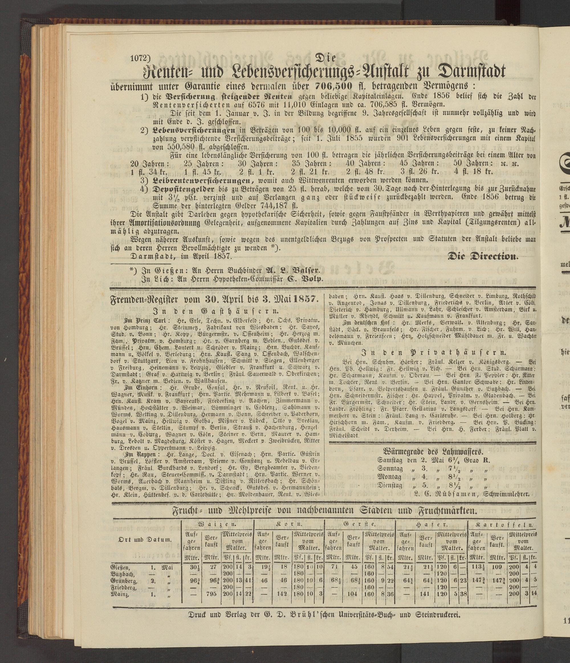 Anzeigeblatt für die Provinzialhauptstadt Gießen. 1840-1867