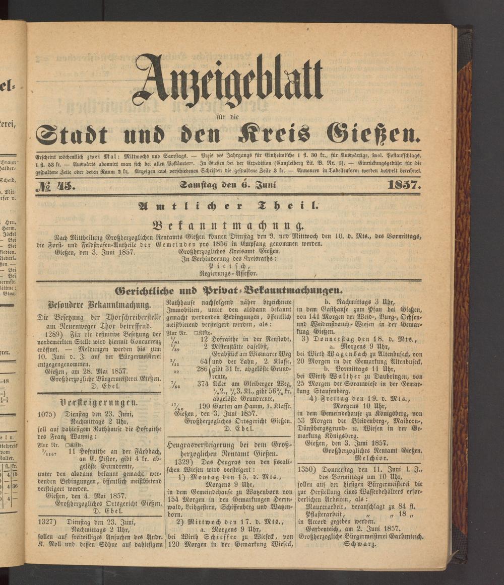 Anzeigeblatt für die Provinzialhauptstadt Gießen. 1840-1867