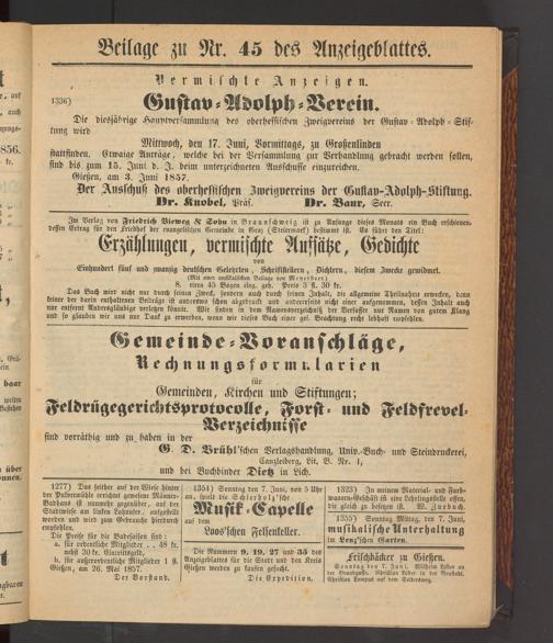 Anzeigeblatt für die Provinzialhauptstadt Gießen. 1840-1867