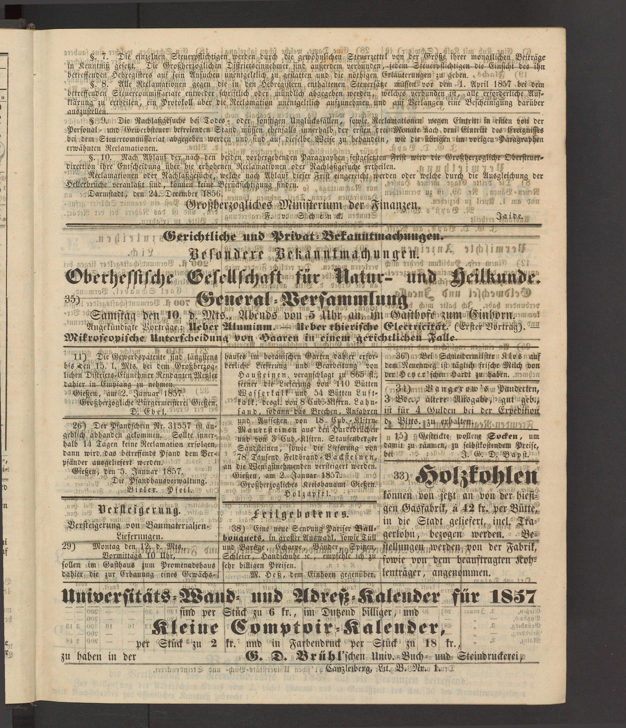 Anzeigeblatt für die Provinzialhauptstadt Gießen. 1840-1867