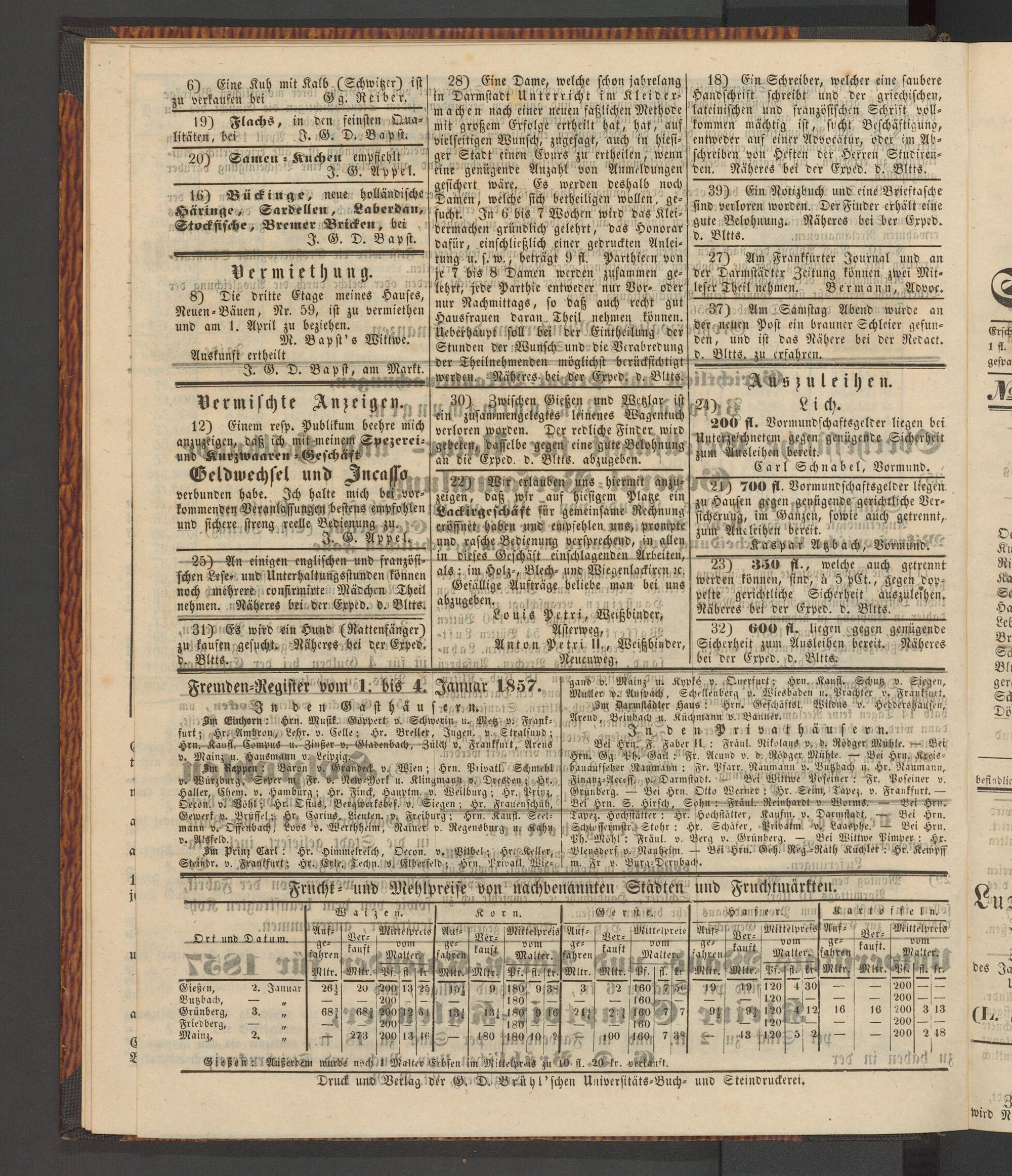 Anzeigeblatt für die Provinzialhauptstadt Gießen. 1840-1867
