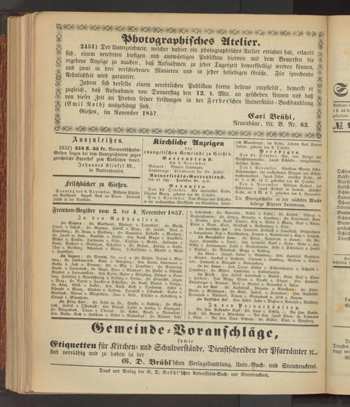 Anzeigeblatt für die Provinzialhauptstadt Gießen. 1840-1867