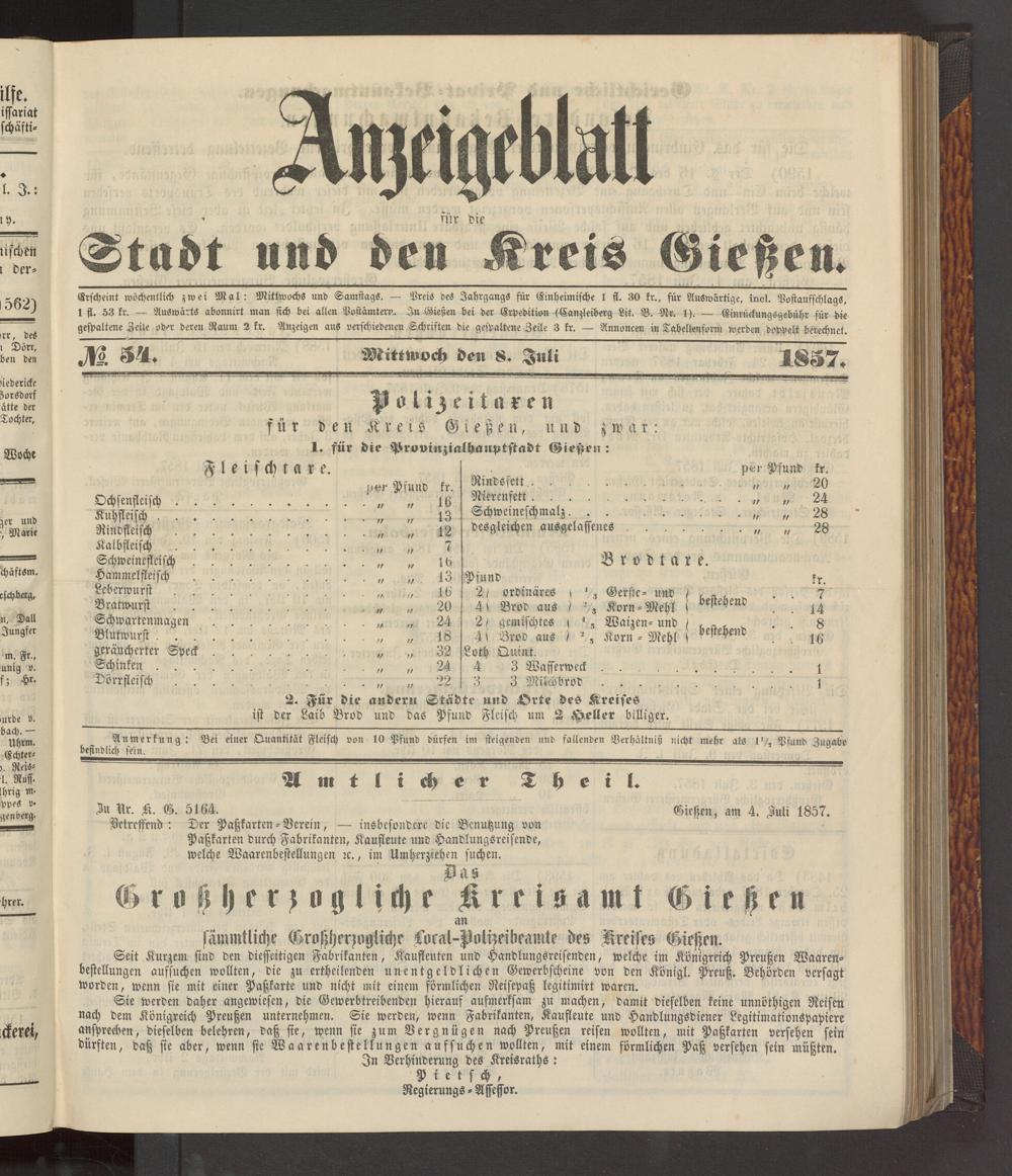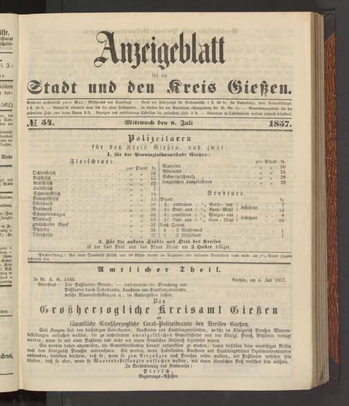 Anzeigeblatt für die Provinzialhauptstadt Gießen. 1840-1867