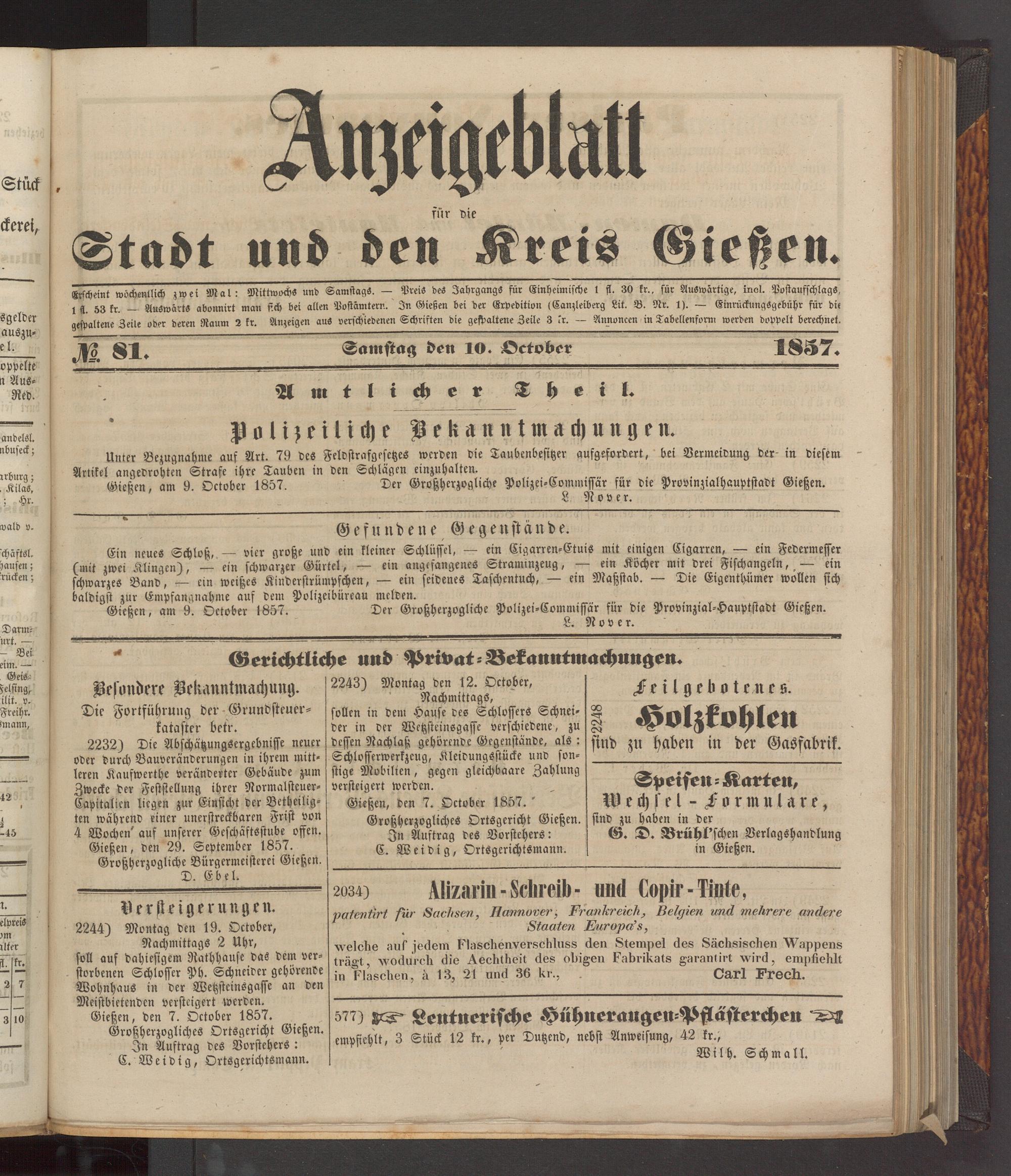 Anzeigeblatt für die Provinzialhauptstadt Gießen. 1840-1867
