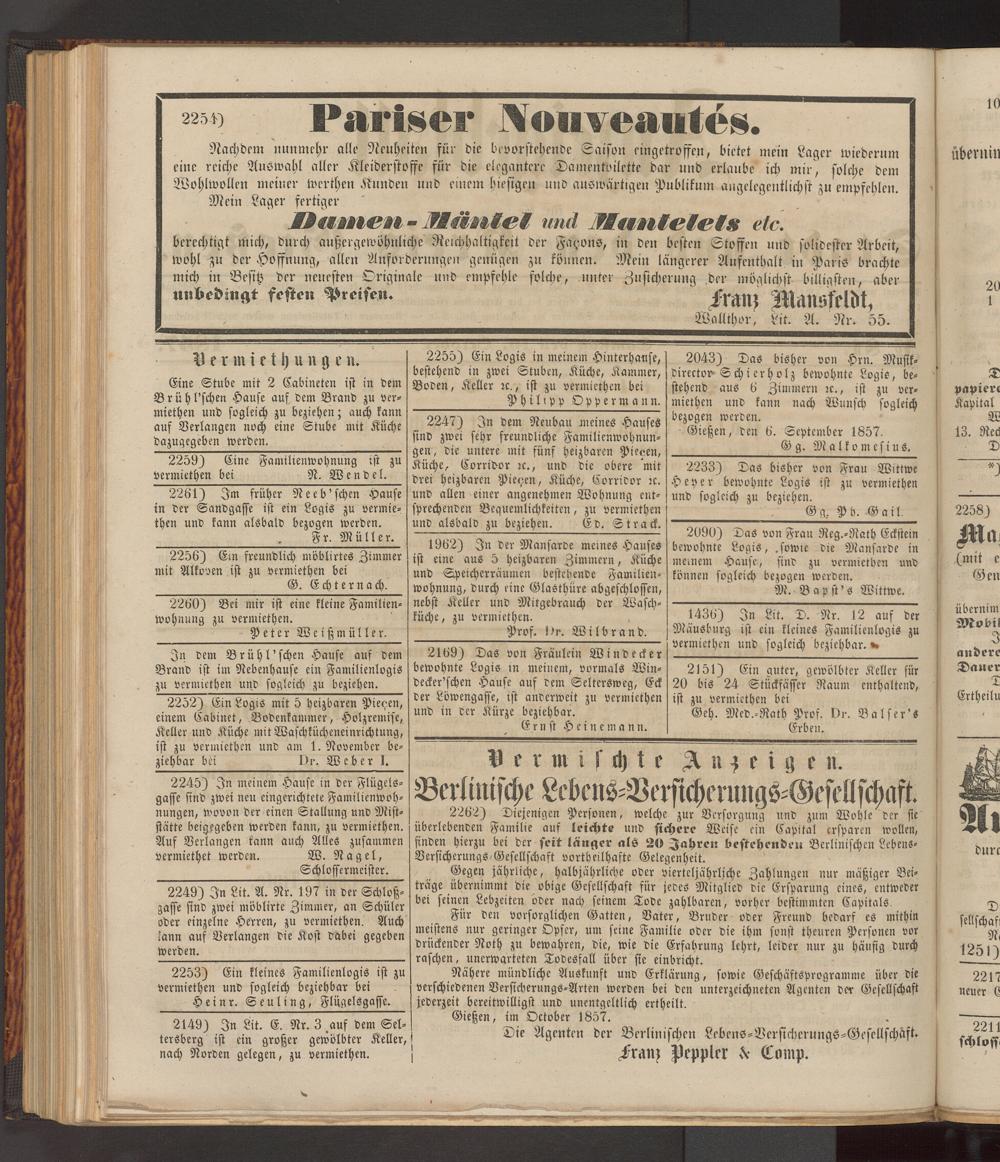 Anzeigeblatt für die Provinzialhauptstadt Gießen. 1840-1867