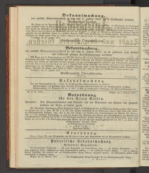Anzeigeblatt für die Provinzialhauptstadt Gießen. 1840-1867