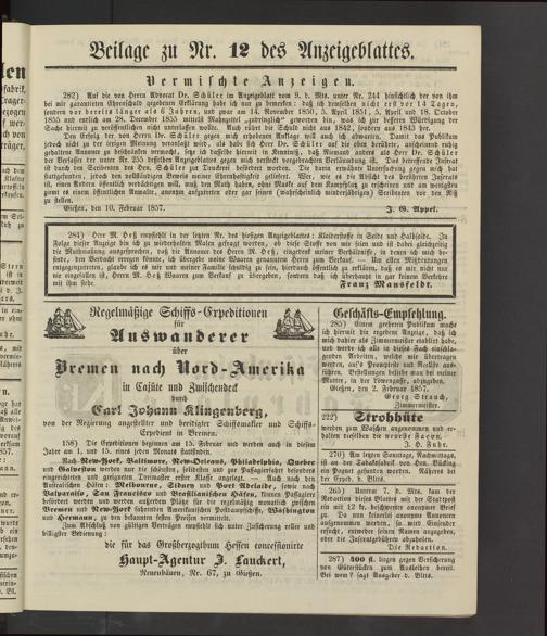 Anzeigeblatt für die Provinzialhauptstadt Gießen. 1840-1867