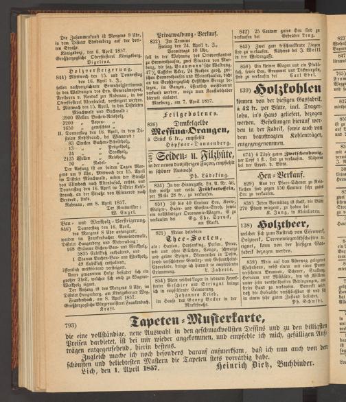 Anzeigeblatt für die Provinzialhauptstadt Gießen. 1840-1867