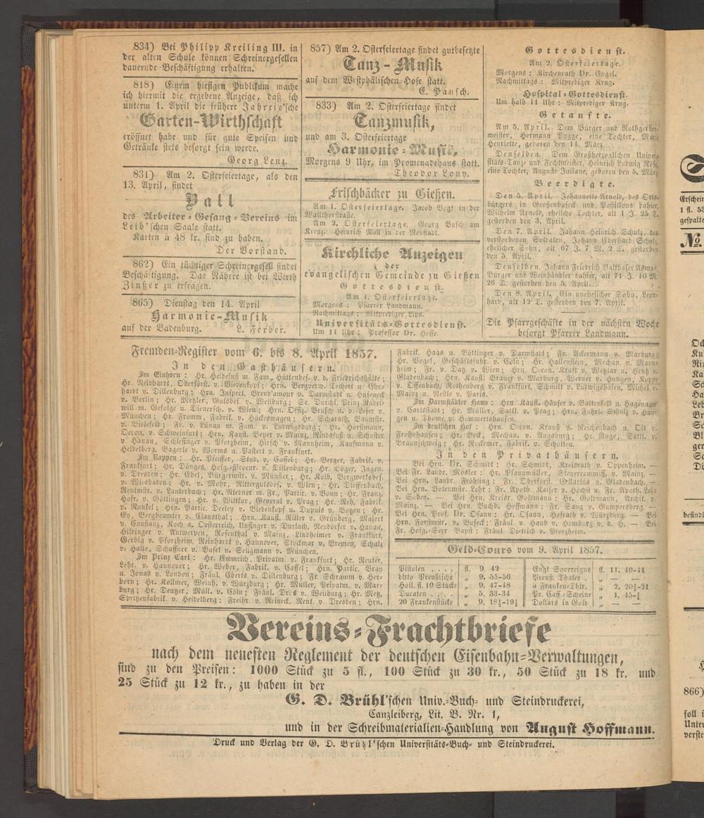 Anzeigeblatt für die Provinzialhauptstadt Gießen. 1840-1867