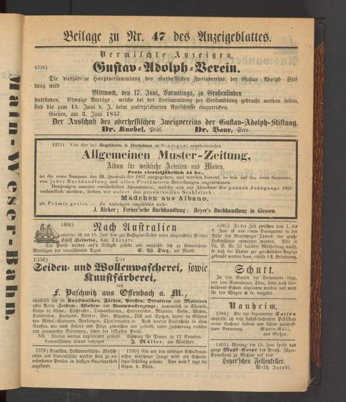 Anzeigeblatt für die Provinzialhauptstadt Gießen. 1840-1867