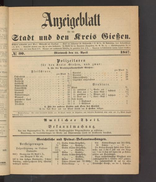 Anzeigeblatt für die Provinzialhauptstadt Gießen. 1840-1867