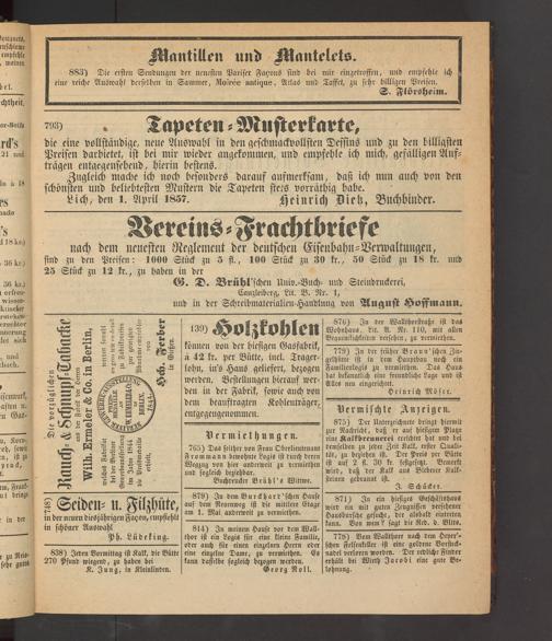 Anzeigeblatt für die Provinzialhauptstadt Gießen. 1840-1867