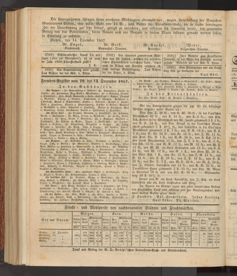 Anzeigeblatt für die Provinzialhauptstadt Gießen. 1840-1867