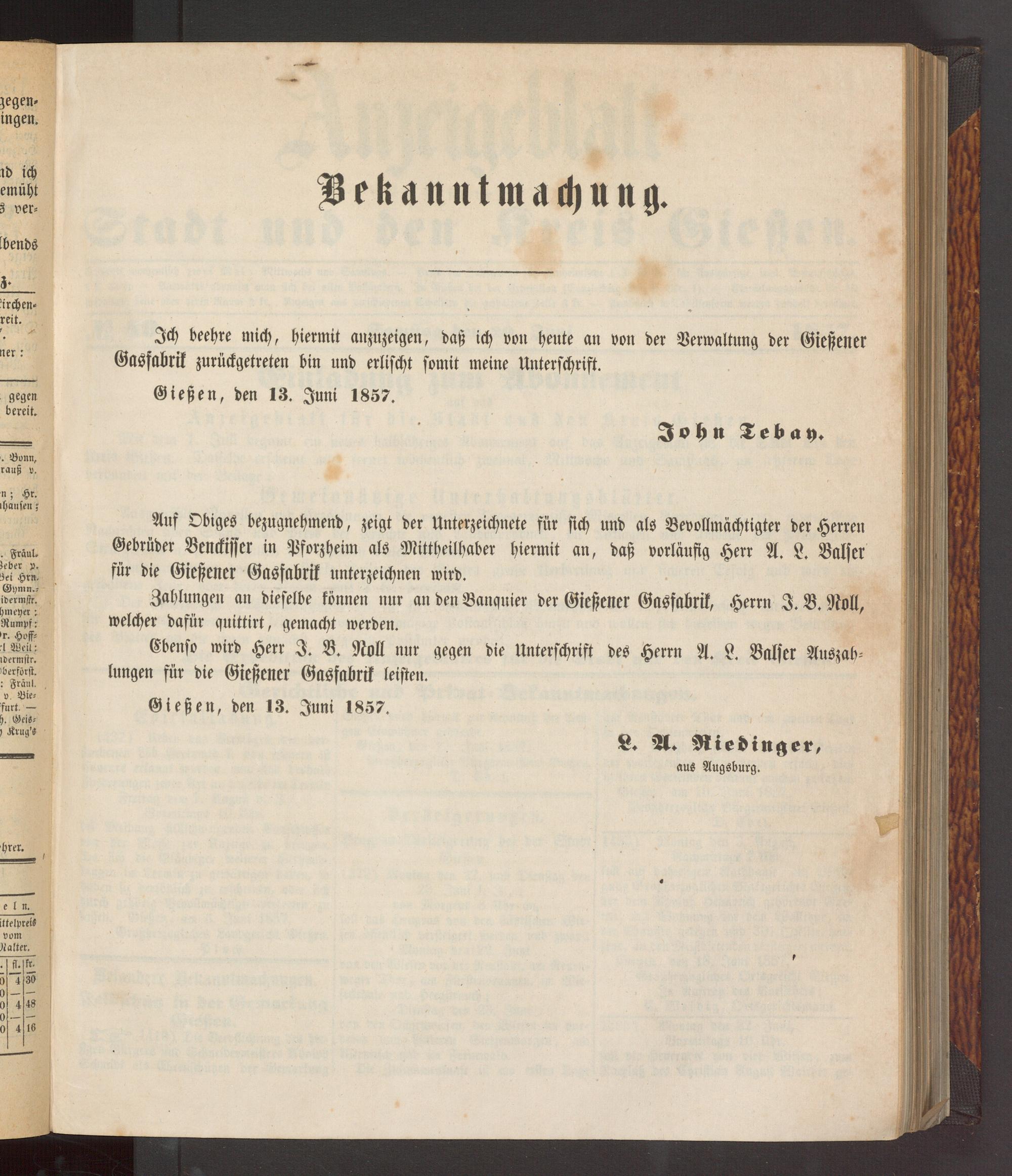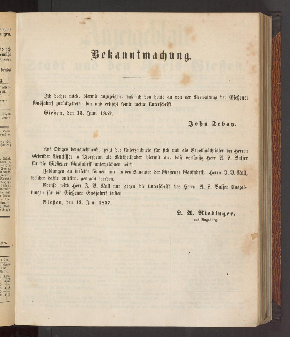 Anzeigeblatt für die Provinzialhauptstadt Gießen. 1840-1867