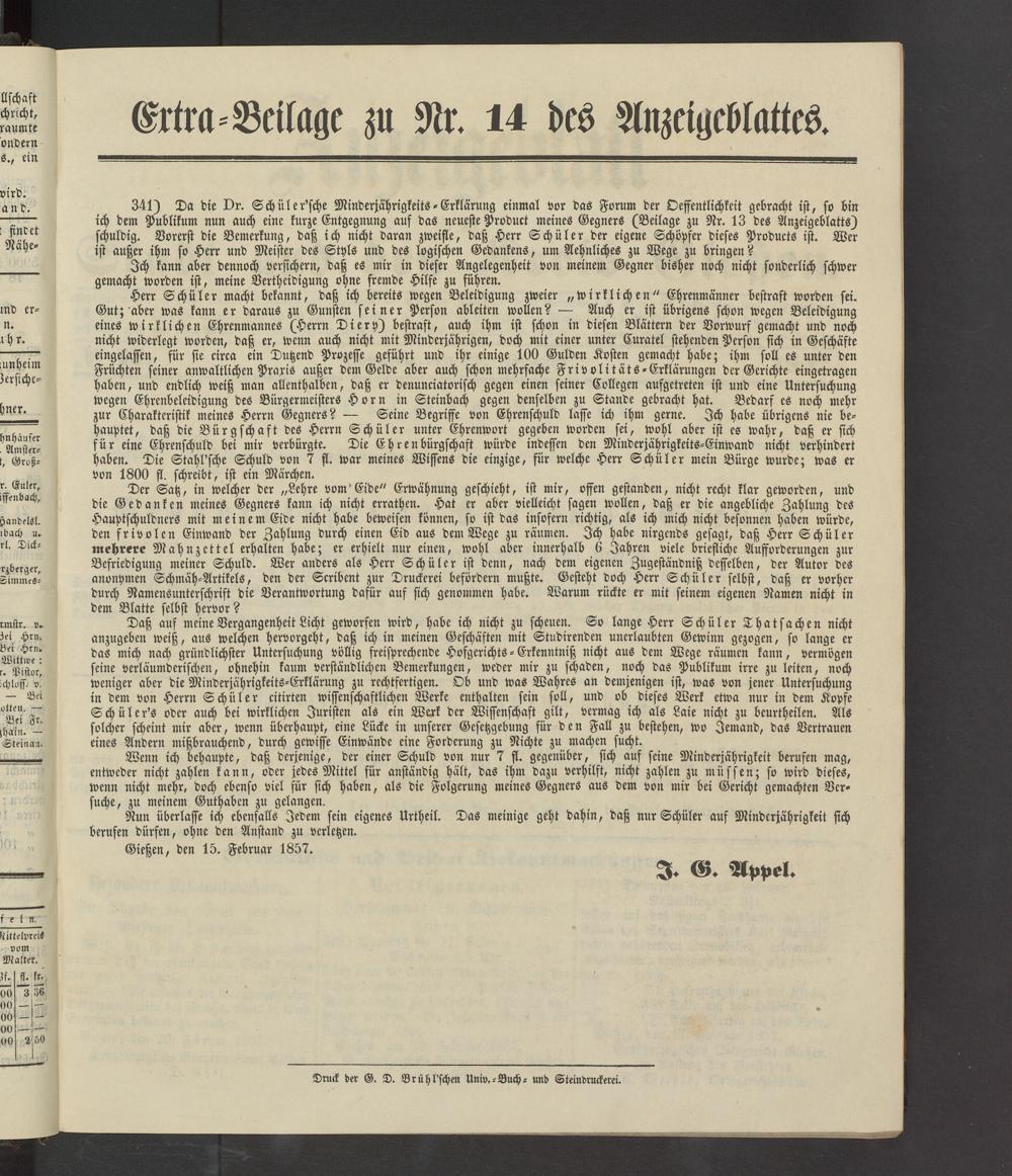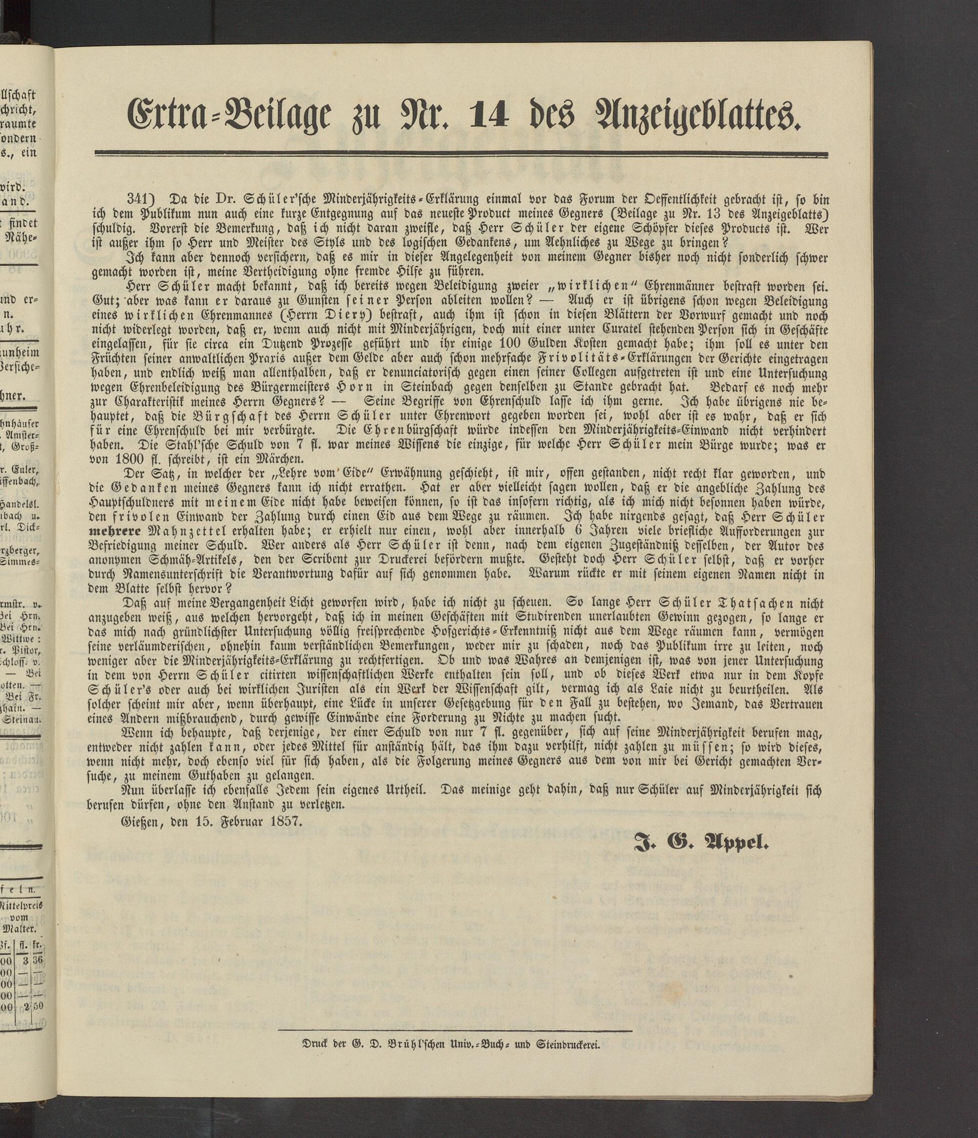 Anzeigeblatt für die Provinzialhauptstadt Gießen. 1840-1867