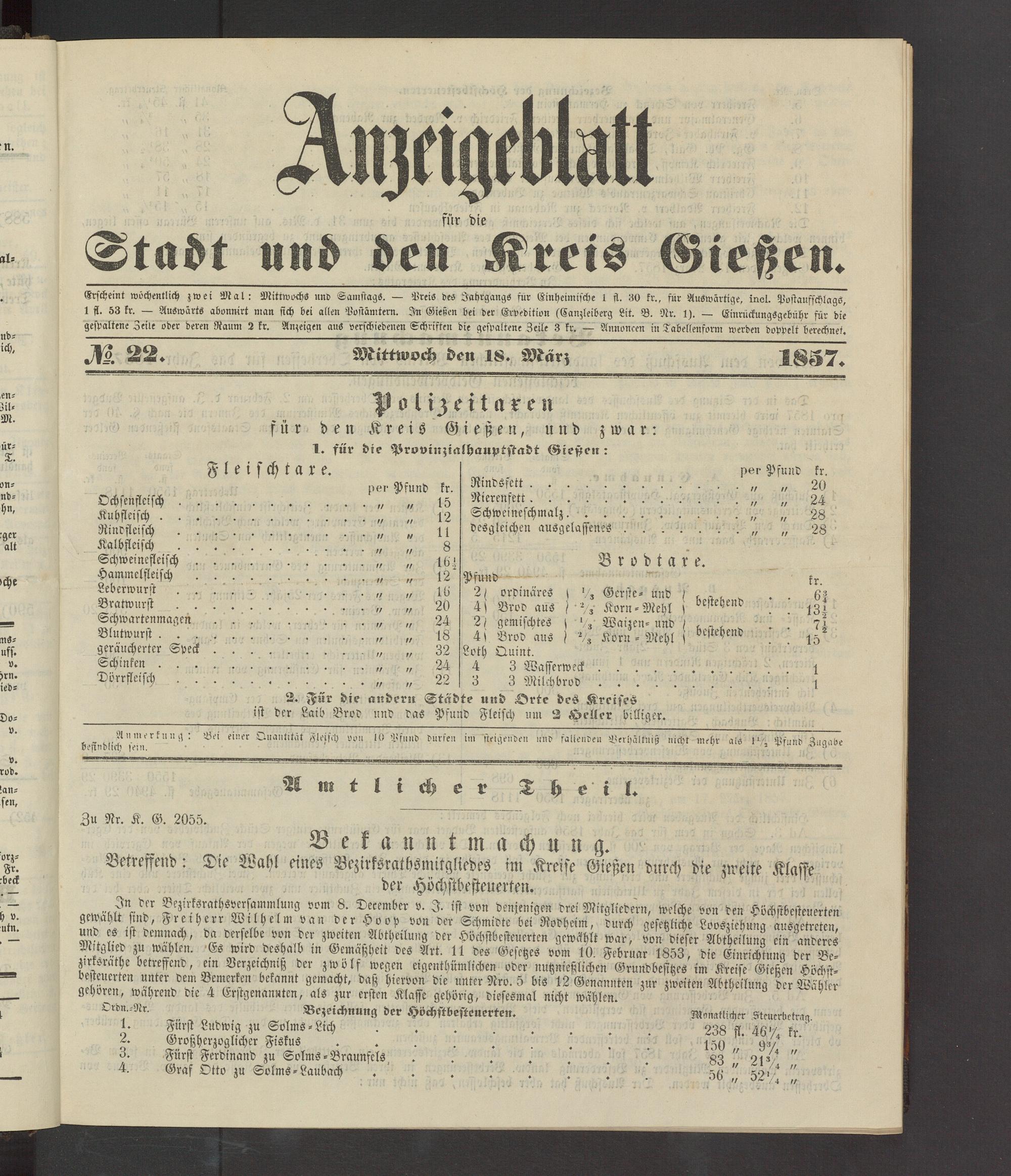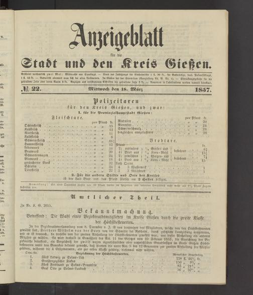 Anzeigeblatt für die Provinzialhauptstadt Gießen. 1840-1867