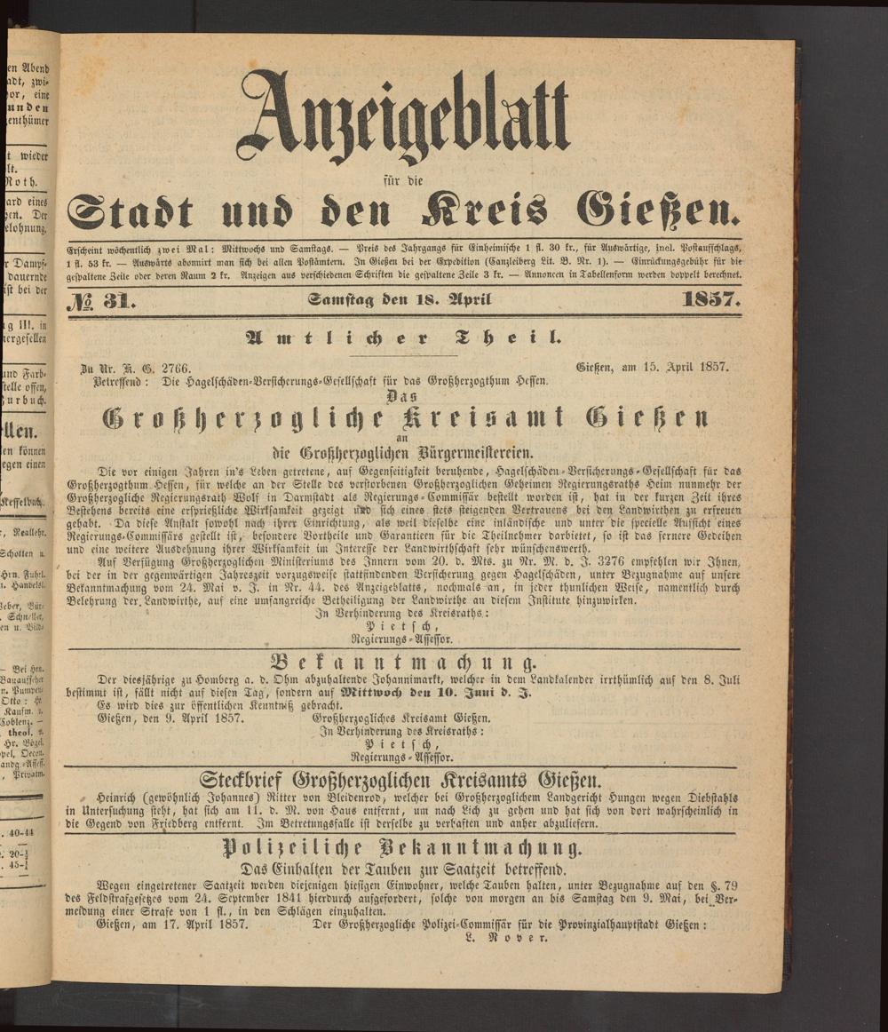 Anzeigeblatt für die Provinzialhauptstadt Gießen. 1840-1867