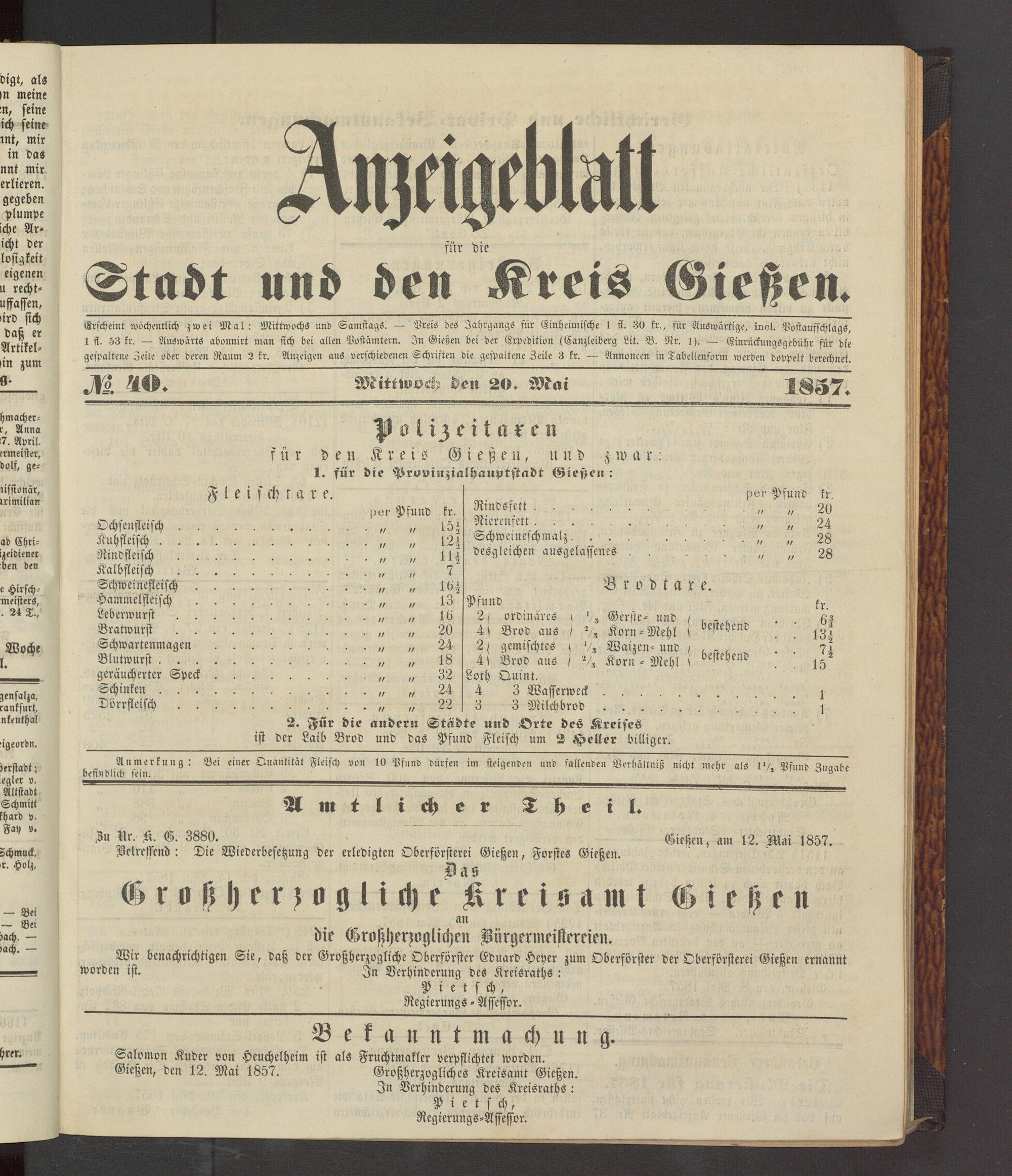Anzeigeblatt für die Provinzialhauptstadt Gießen. 1840-1867
