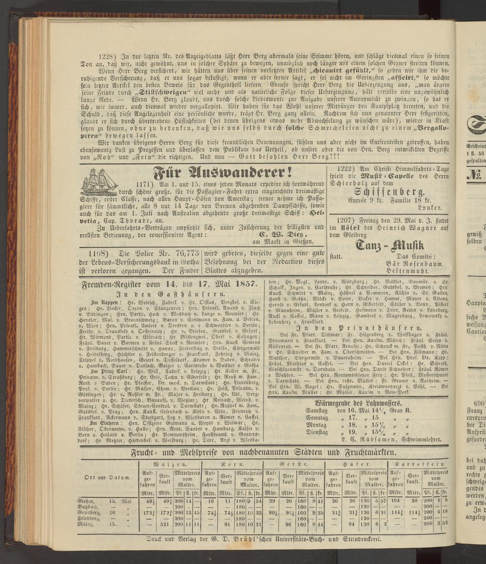 Anzeigeblatt für die Provinzialhauptstadt Gießen. 1840-1867