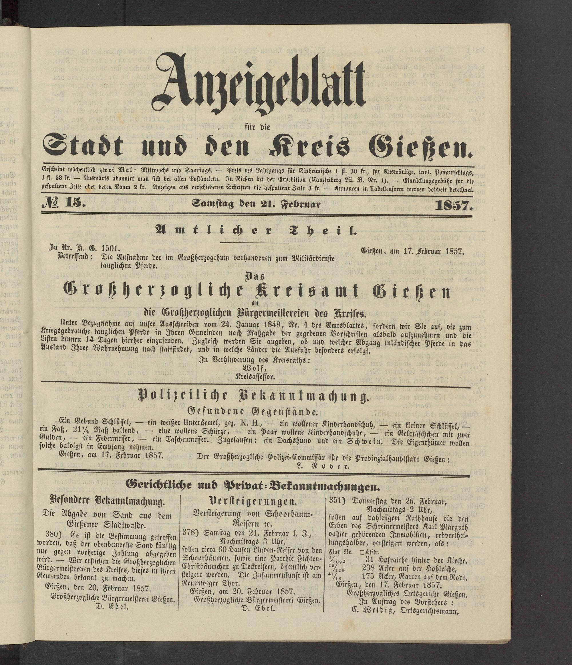 Anzeigeblatt für die Provinzialhauptstadt Gießen. 1840-1867
