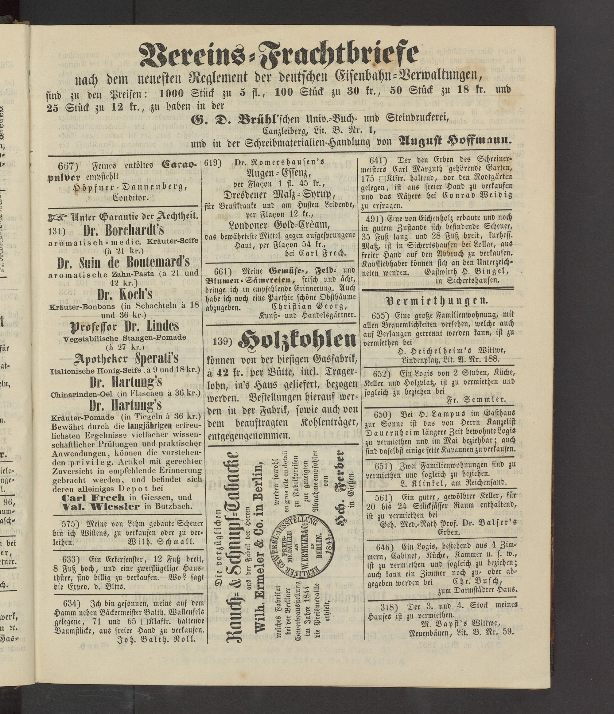 Anzeigeblatt für die Provinzialhauptstadt Gießen. 1840-1867