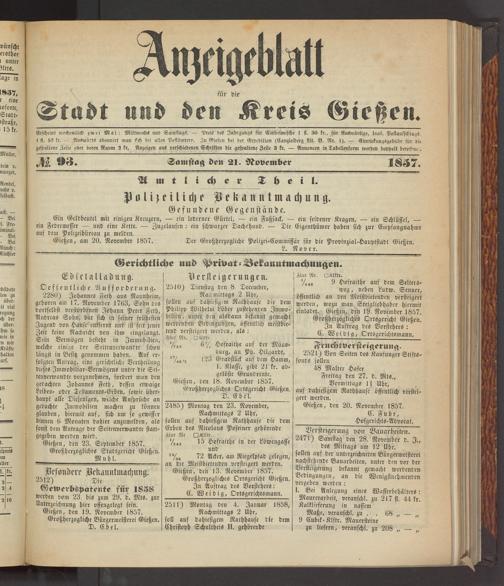 Anzeigeblatt für die Provinzialhauptstadt Gießen. 1840-1867