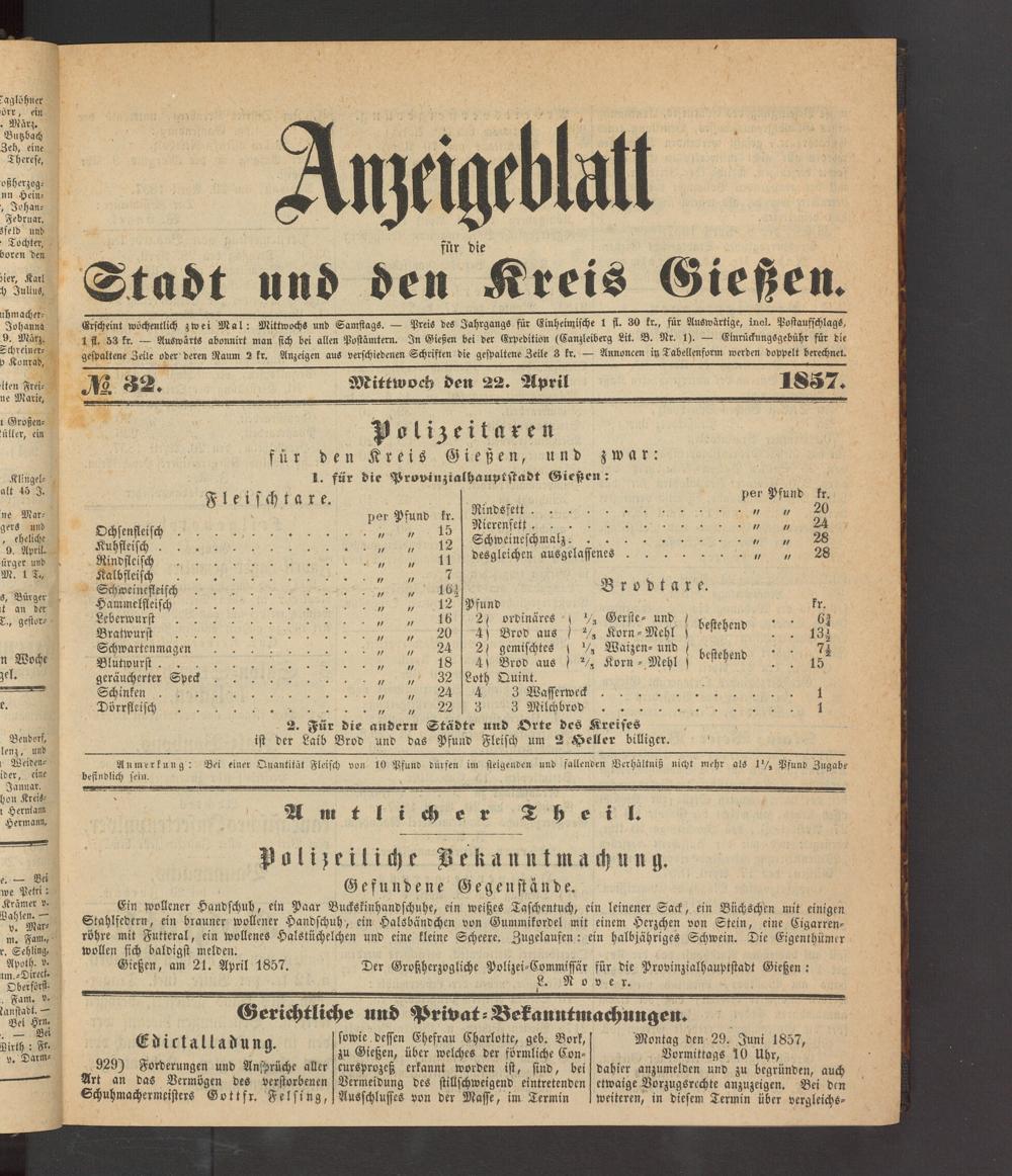 Anzeigeblatt für die Provinzialhauptstadt Gießen. 1840-1867