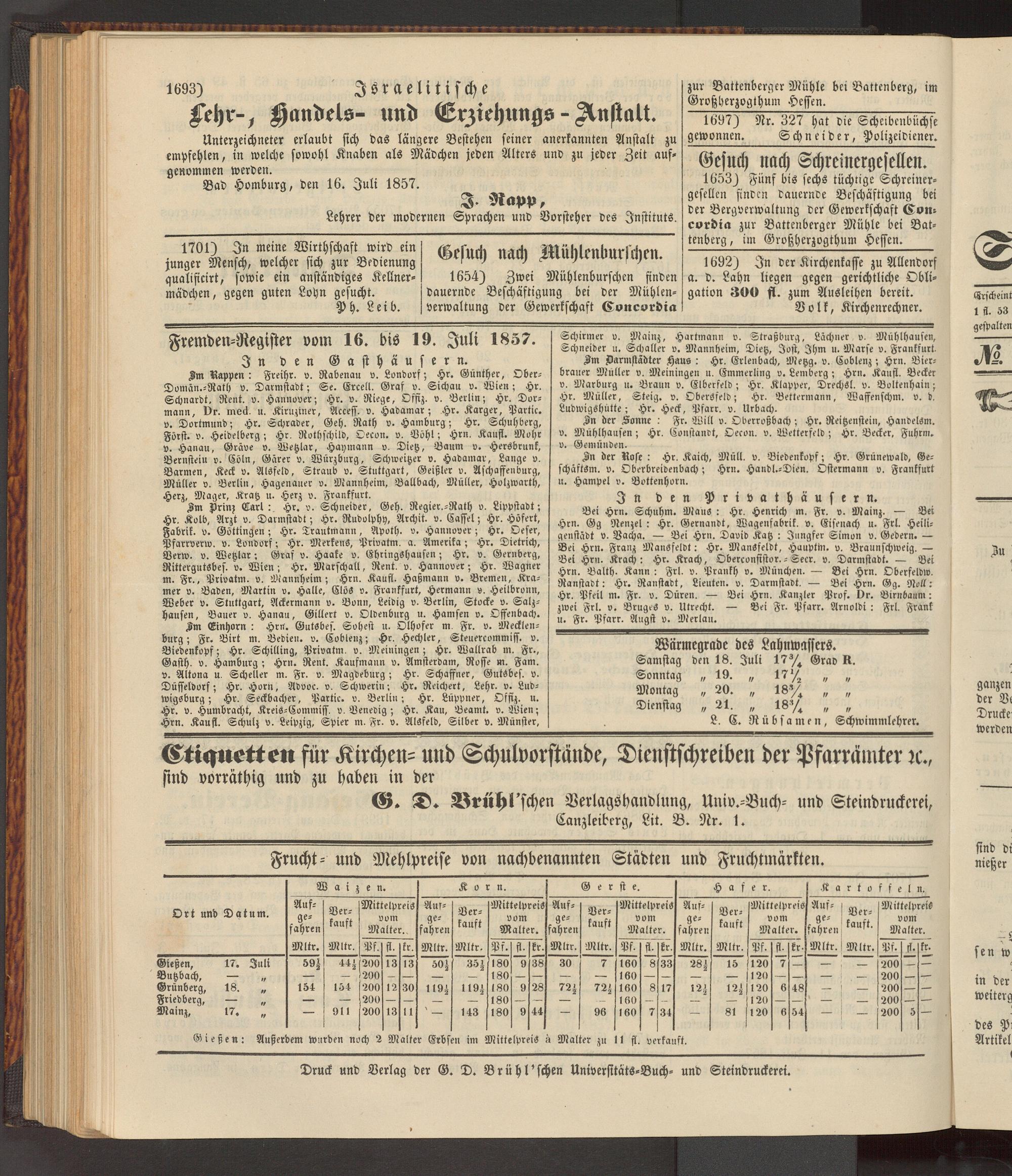 Anzeigeblatt für die Provinzialhauptstadt Gießen. 1840-1867