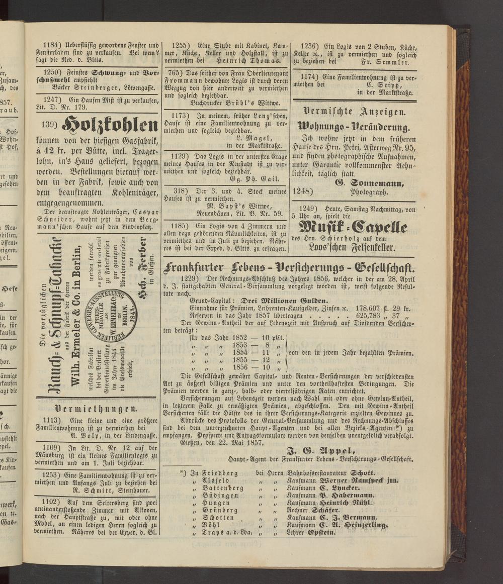 Anzeigeblatt für die Provinzialhauptstadt Gießen. 1840-1867