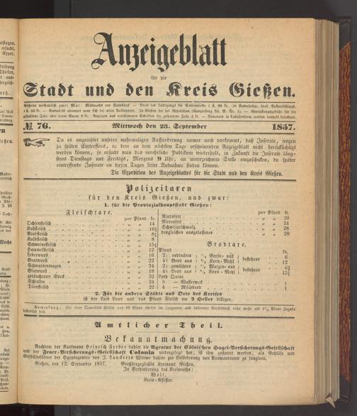 Anzeigeblatt für die Provinzialhauptstadt Gießen. 1840-1867