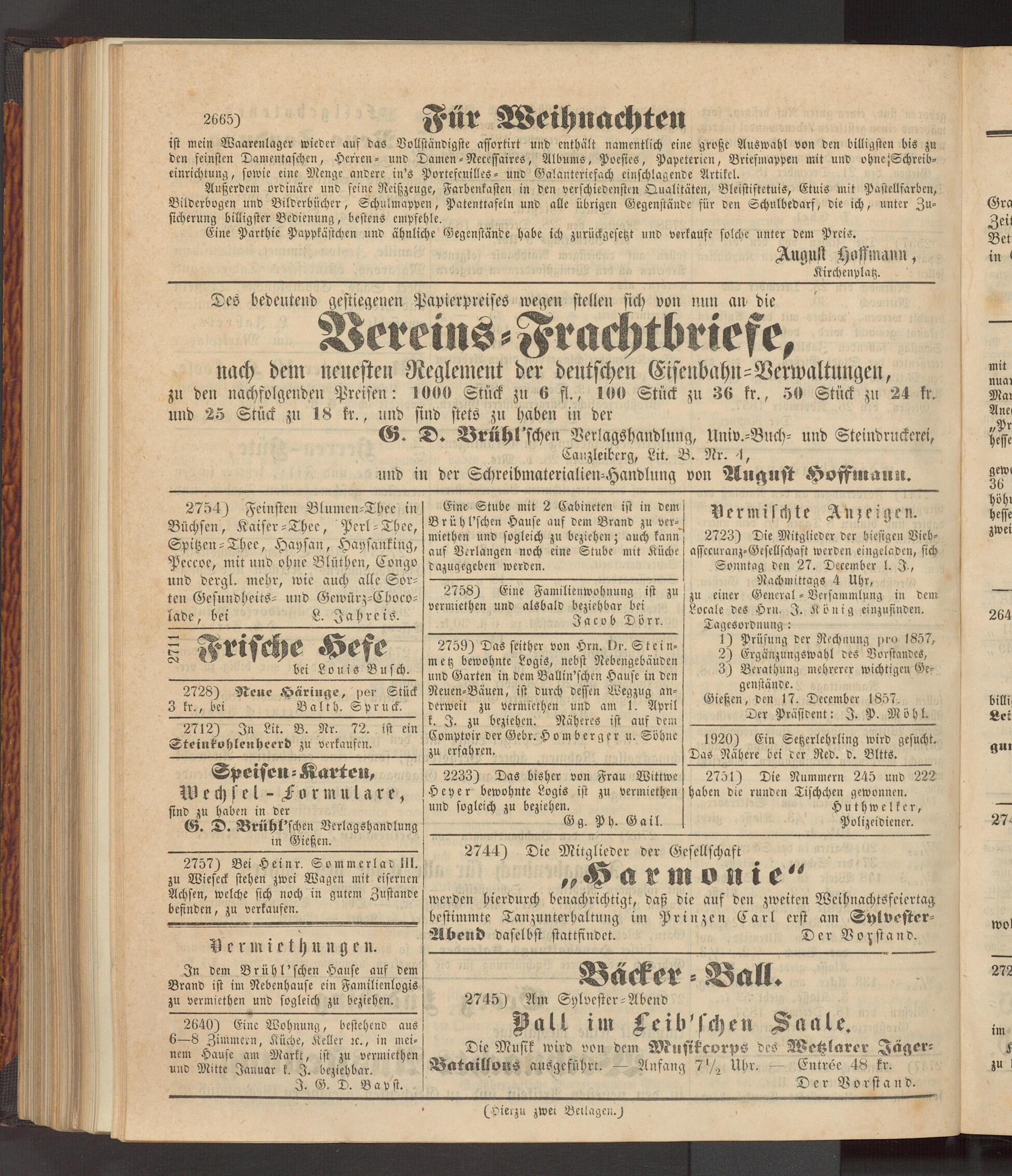 Anzeigeblatt für die Provinzialhauptstadt Gießen. 1840-1867