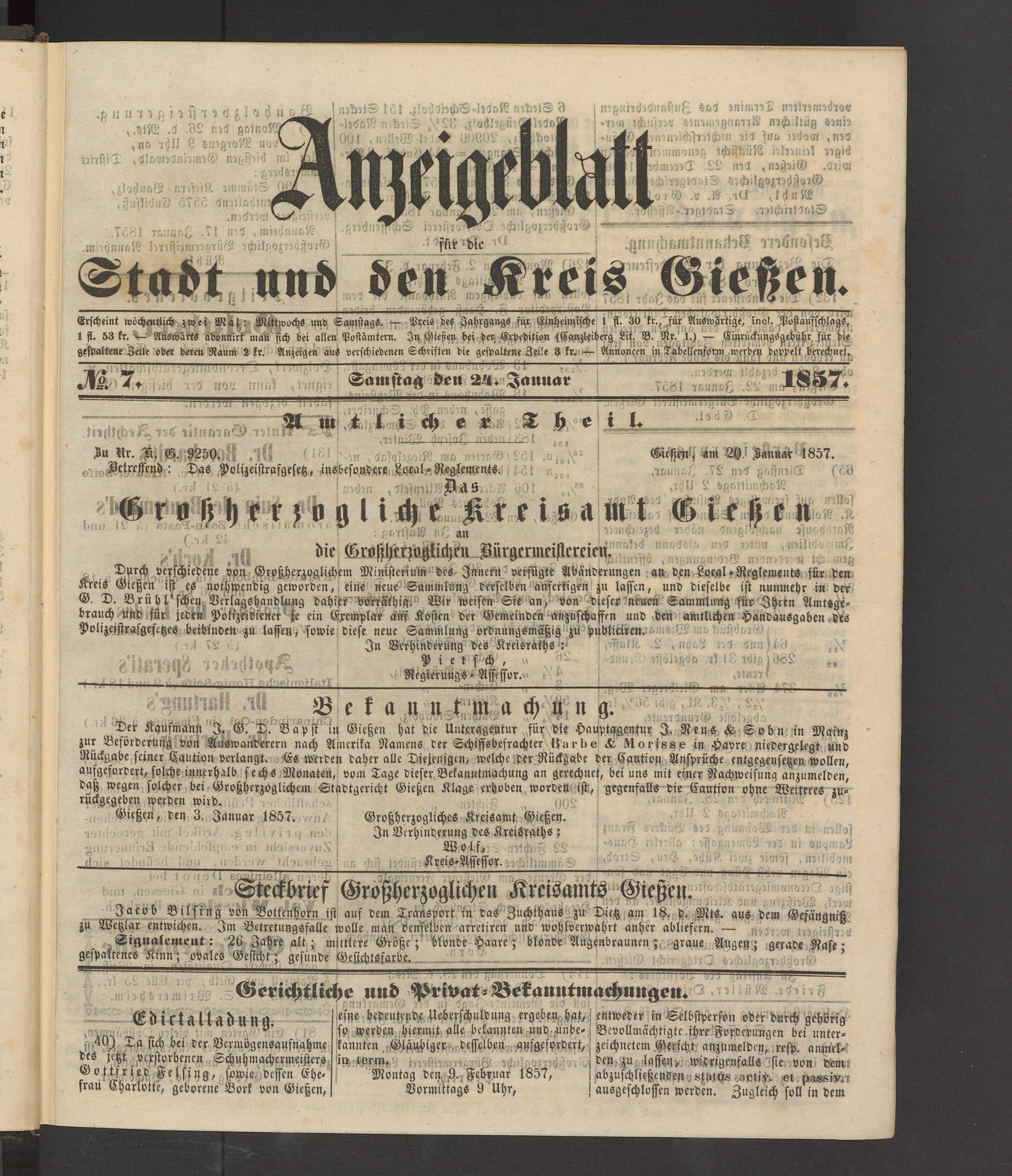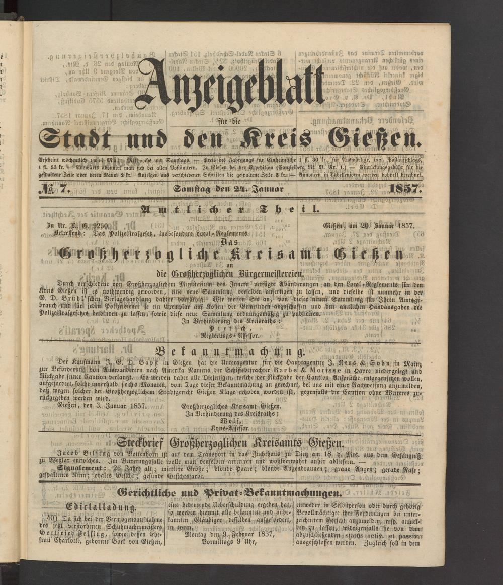 Anzeigeblatt für die Provinzialhauptstadt Gießen. 1840-1867