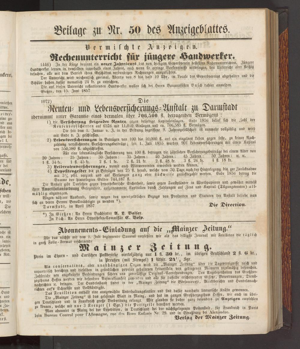 Anzeigeblatt für die Provinzialhauptstadt Gießen. 1840-1867