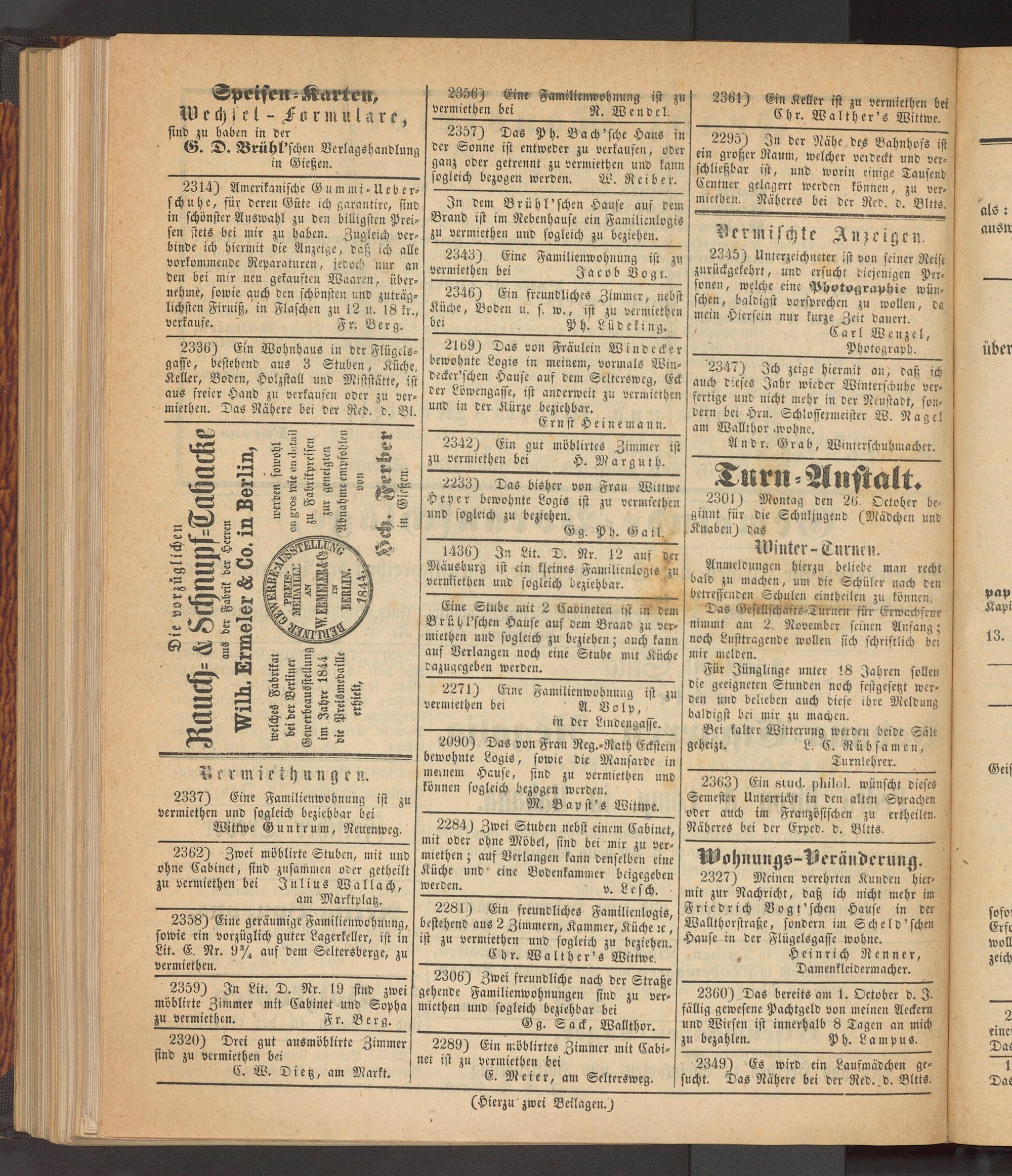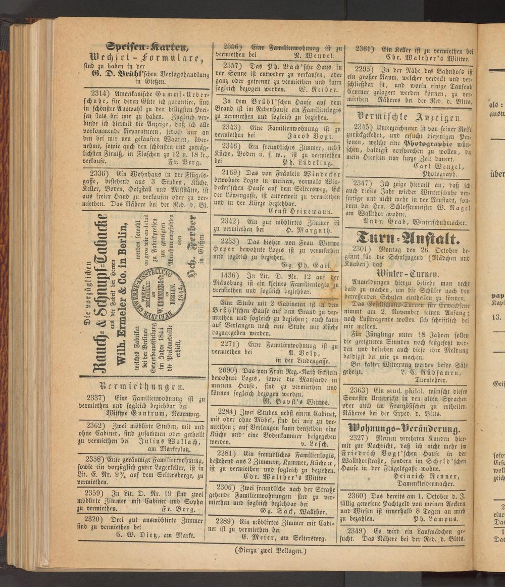 Anzeigeblatt für die Provinzialhauptstadt Gießen. 1840-1867