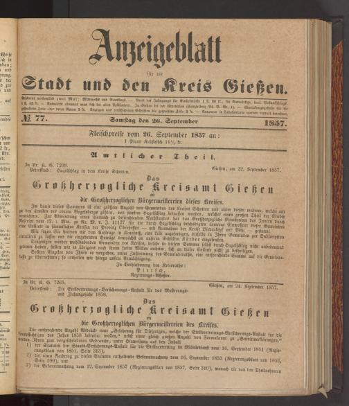 Anzeigeblatt für die Provinzialhauptstadt Gießen. 1840-1867