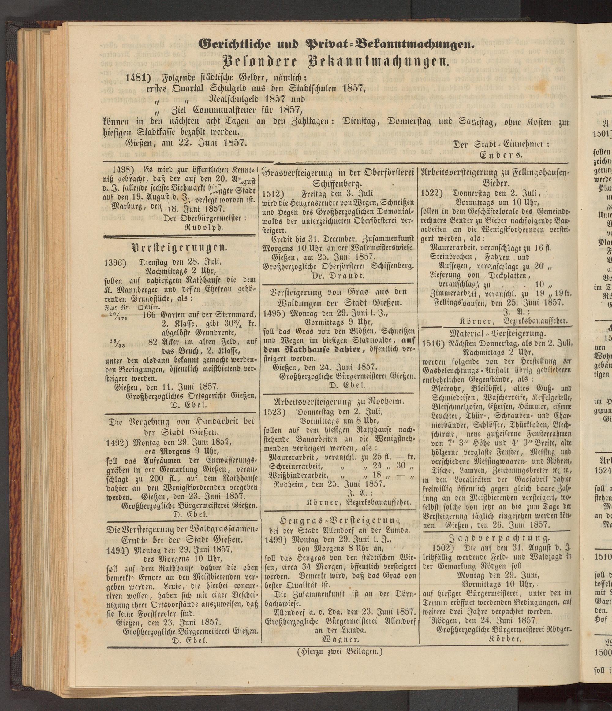 Anzeigeblatt für die Provinzialhauptstadt Gießen. 1840-1867
