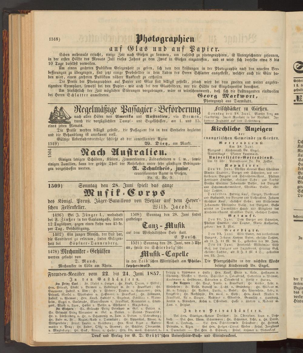 Anzeigeblatt für die Provinzialhauptstadt Gießen. 1840-1867