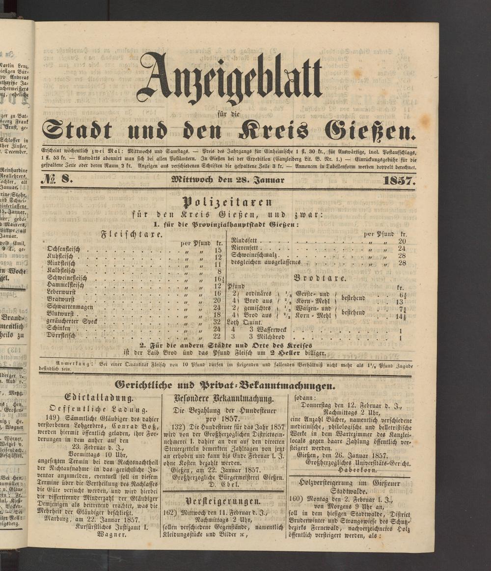 Anzeigeblatt für die Provinzialhauptstadt Gießen. 1840-1867